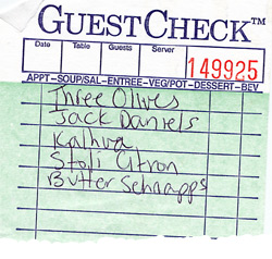 12:30am: My day enters its 23rd hour and we stop at another bar, something like the Lakewood Village Bar or something like that, and the napkin game once again rears its ugly head. What you're about to see looks nasty, but it ended up tasting so good that we are hereby claiming it, naming it and patenting it as "the Aunt Jemima".